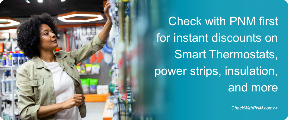 When you buy select ENERGY STAR® certified products at participating retailers, PNM gives you an instant discount at the register. Just go to any participating retailer and look for the PNM logo on select energy-saving products to receive the instant savings discount.